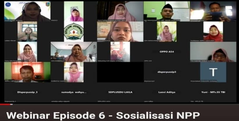 Rabu, 22 Juni 2023 Bidang Perpustakaan pada Dinas Perpustakaan Dan Kearsipan (Disperpusip) Kabupaten Jombang melaksanakan kegiatan Webinar Rumah Pelita (Pembangunan Literasi Informasi Untuk Kita). Kali ini temanya tentang Nomor Pokok Perpustakaan dengan narasumber adalah Sdr. Nurul Fadilah, SE, Pustakawan dari Disperpusip Propinsi Jawa Timur. Kegiatan berlangsung “Gayeng” terbukti sampai batas waktu yang ditentukan Sang Pembawa Acara yakni Sdr. Desy Kurvila R, Amd.Lib terpaksa mengingatkan bahwa waktu sudah hampir habis sehingga jika peserta masih belum jelas bisa menghubungi petugas yang menangani NPP Bidang Perpustakaan di Disperpusip Jombang.