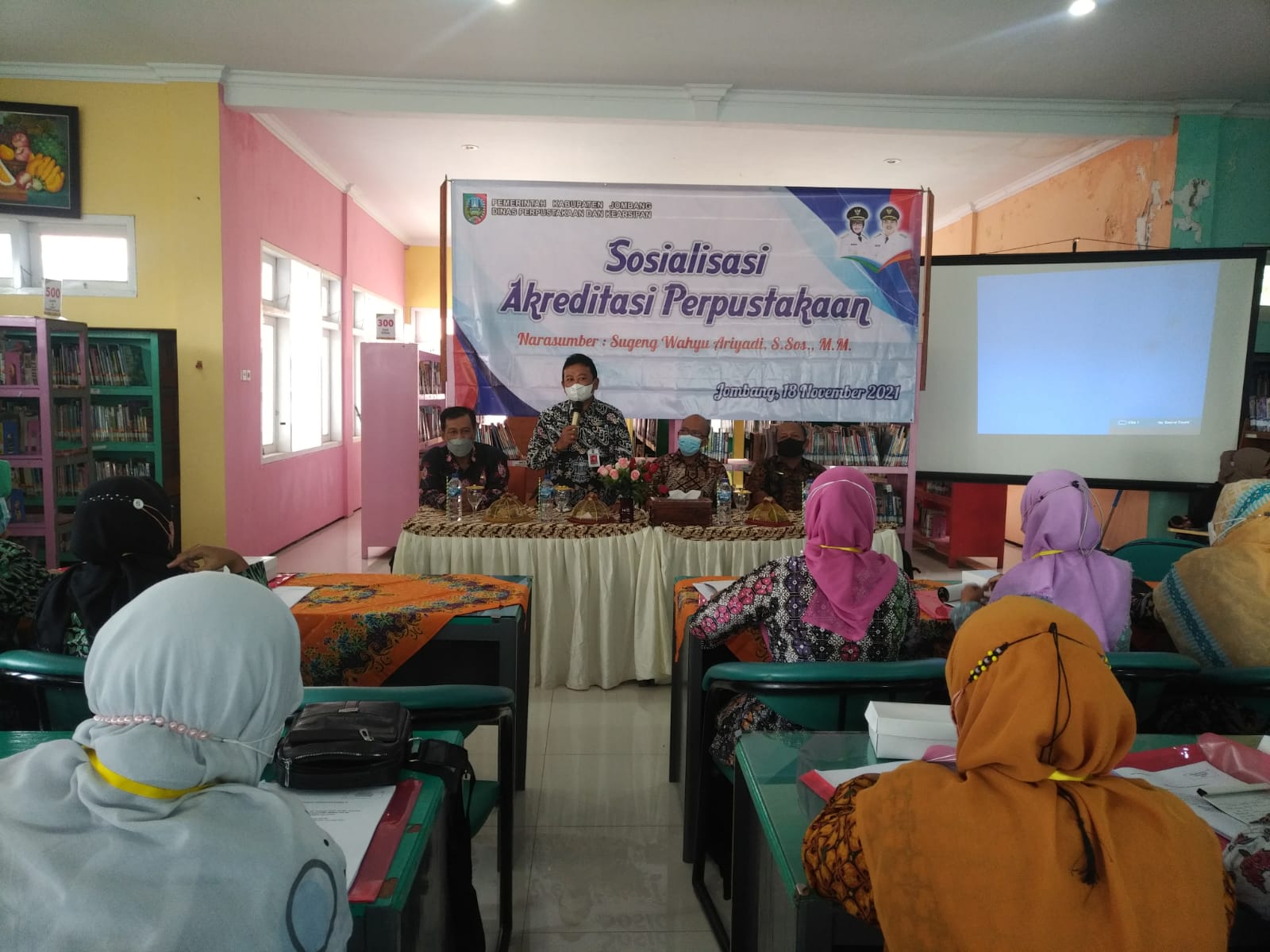 Kali ini dengan mengundang Pakar akreditasi dari Dinas Perpustakaan Provinsi Jawa Timur, Bapak Drs. Suwignyo.MM membuka Sosialisasi Akreditasi Perpustakaan di Gedung Perpustakaan Umum Kabupaten Jombang dengan dihadiri 40 lembaga yang tersebar diseluruh wilayah Kabupaten Jombang